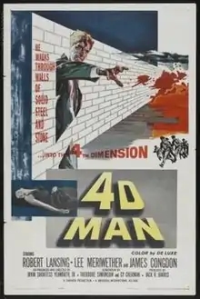 4D Man (also known as The Evil Force in the UK; reissued as Master of Terror in the US) is a 1959 independent[2] American science-fiction film in color by De Luxe, produced by Jack H. Harris (from his original screenplay), directed by Irvin S. Yeaworth Jr.,[3] and starring Robert Lansing, Lee Meriwether, and James Congdon. The film was released by Universal-International.