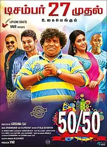 50/50 is an 2019 Indian Tamil-language horror comedy film directed by Krishna Sai, who previously directed the Kannada film Traya (2019). The film stars Yogi Babu, Sethu, Shruthi Ramakrishnan, Bavithra, and Shreya Gupta. This film marks Ramakrishna's return to Tamil cinema after a sabbatical and Bavithra's lead film debut.[1] This was Sethu's final film as actor.