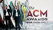 - ↑ "Final Performers and Presenters Announced for the 51st Academy of Country Music Awards". The Academy of Country Music. April 1, 2016. Retrieved April 3, 2016.