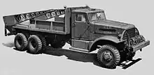 Built on a long, reinforced chassis, they were used to carry treadway pontoon bridges for Engineer Combat Battalions.[13] A large double arm hydraulic boom built by Heil was used to self unload components, often directly into a river. A 25,000 lb (11,000 kg) winch was mounted at the front. They had an auxiliary air compressor and large reservoir tanks, used to inflate pontoon floats. Brockway built 1,166, White 1,152, Ward LaFrance 589, and FWD 168.[6][14][15][16]