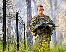 The battalion contributed a mechanised platoon to two rotations of the ANZAC Battle Group deployment to Timor in 2007 and 2008 as part of Operation Astute.[30] In 2008–09, elements of the battalion deployed to Afghanistan as part of Operation Slipper, forming the basis for the 1st Mentoring and Reconstruction Task Force (MRTF-1).[31] One member of the battalion was killed in action during an engagement near Kakarak on 16 March 2009.[32][33][34]