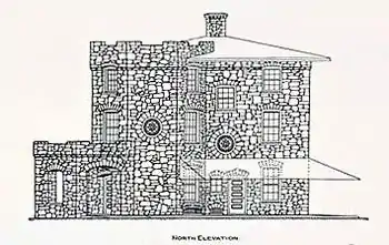 When first constructed, features of the model fireproof farmhouse included a state-of-the-art wood fired water system which pumped spring water to a third-floor holding tank; a coal fired furnace with radiators in each room for heat; a similarly stone built garage of sufficient size to accommodate two large touring cars; and awnings and shutters with a concrete sidewalk all around. The walls are of granite, the floors and ceilings of poured concrete with steel reinforcement, the roof is lined with copper. Woodwork, plaster, brickwork, and concrete were all specced to be of "first class materials and workmanship". Himmelwright estimated its lifespan at 400–500 years.