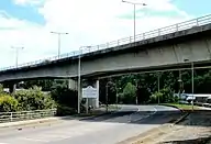 The Ely Link Road (Welsh: Ffordd Gyswllt Trelái) between the Culverhouse Cross Interchange (51°27′57″N 3°16′12″W / 51.465840°N 3.269895°W) and the Leckwith Interchange (51°28′14″N 3°12′42″W / 51.470641°N 3.211762°W), sometimes referred to as the Leckwith Road Interchange. It is 4.83 km (3.00 mi) in length and was opened in 1982 and built by Davies Middleton & Davies Ltd (DMD).[13] It was designed to relieve Ely of through traffic and partly cuts into Leckwith Hill.[6]