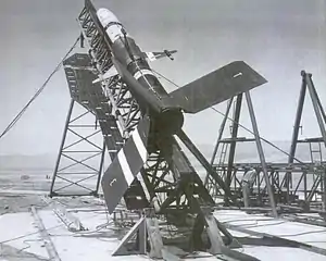 Flight testing of the AAM-N-5 began in July 1948 at the Naval Ordnance Test Station,[2] with Douglas JD-1 Invader utility aircraft acting as the launching platform. Starting in 1951, test launches were conducted using Douglas F3D Skyknight nightfighters as carrier aircraft;[1] fifteen launches were also made from ground launchers at NOTS' China Lake range.[3] However, in 1953 the program was cancelled, as better missiles were becoming available.[1]