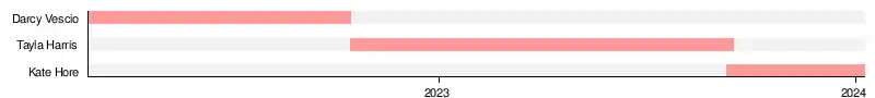 West Coast | Kellie Gibson | 17 | 34 | 2020–present | [32] |