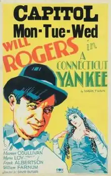 A Connecticut Yankee is a 1931 American Pre-Code film adaptation of Mark Twain's 1889 novel, A Connecticut Yankee in King Arthur's Court. It was directed by David Butler to a script by William M. Conselman, Owen Davis, and Jack Moffitt. It was produced by Fox Film Corporation (later 20th Century Fox), who had earlier produced the 1921 silent adaptation of the novel, A Connecticut Yankee in King Arthur's Court. A Connecticut Yankee is the first sound film adaptation of Twain's novel.[2] It is unrelated to the 1927 musical also titled A Connecticut Yankee.