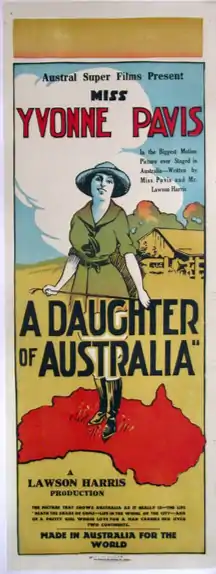 A Daughter of Australia is a 1922 Australian silent film directed by Lawson Harris. It concerns a rich squatter, Arthur Fullerton (Charles Beethan), and his daughter, Barbara (Yvonne Pavis).[2][3]