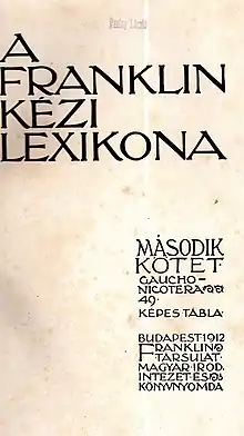 A Franklin kézi lexikona (i.e. actually the Franklin Company Publisher's Hand Lexicon) a larger handbook in Hungarian published at the beginning of the 20th century.
