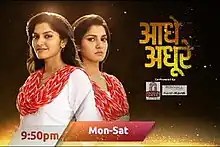 Aadhe Adhoore is an Indian television series which aired on Zindagi from 14 December 2015 to 12 April 2016.[2][3] The story revolves around Jassi who lives in rural Kapurthala in Punjab with a loving mother-in-law and her brother-in-law as her husband works abroad. The show touched on themes of unrequited love and adultery.[4][5] Despite a complex storyline and well-received acting performances, the show got cancelled after viewers thought the show depicted a bad woman in Jassi.[6][7]