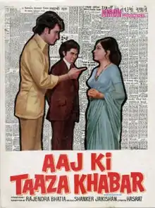 Aaj Ki Taaza Khabar (transl.โToday's breaking news) is a 1973 Indian comedy film directed by Rajendra Bhatia. Its stars Kiran Kumar and Radha Saluja.[1] This film was adapted from a Gujarati play and later remade in Marathi as Pheka Pheki (1989) and in Hindi as Golmaal Returns (2008).[2]