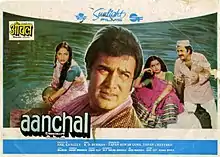 Aanchal is a 1980 Hindi film directed by Anil Ganguly, starring Rajesh Khanna, Raakhee and Rekha in leading roles and supported by Prem Chopra and Amol Palekar. This story basically revolves around a divine relationship shared by Rajesh Khanna with Raakhee. The music is by R. D. Burman. The songs are sung by Kishore Kumar, Lata Mangehkar and Asha Bhonsle.[1][2] The movie is loosely based on the 1954 Bengali movie Champadangar Bou.