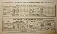 Extracts from Bradshaw's Guide, April 1910 showing the two lines which crossed at Abbey Junction, Cumberland