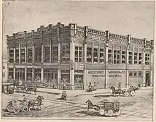 The building housed retail stores including a grocery story and later on a Crombie's Drug Store. The commercial retail stores were in the ground floor while on the second floor housed studios and offices.[3]