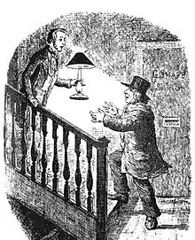 The dramatic police interception of the illegally returned transported convict Magwitch's attempt to get to the Continent and to liberty, is one of the prime examples of this situation. (The other is the 'Anwerks package' scene in Martin Chuzzlewit when Jonas Chuzzlewit, the murderer, is turned back as he boards ship for the Low Countries.) These scenes have a detail of circumstance and a power of apprehension that suggests the feeding of fiction by an often told family story.[2]