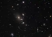 Abell 262 is a galaxy cluster in the Abell catalogue. It is part of the Perseus–Pisces Supercluster, one of the largest known structures in the universe.[4] Although its central galaxy, NGC 708, is a giant cD galaxy, most of its bright galaxies are spirals, which is unusual for a galaxy cluster.[4] With approximately 200 members it is a comparatively small cluster.[5]