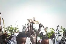 - A large crowd of people celebrating the Aboakyer festival in Ghana