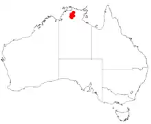 The type specimen was collected in Kakadu National Park on April 21, 1990 by A.V. Slee & L.A. Craven (#2694),[2] with holotypes, NSW 236231, MEL 1617292A, PERTH 3347060 and elsewhere.[2]
