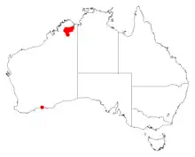 It is native to an area of the Kimberley region of Western Australia.[1] The shrub grows in sandy alluvium especially along watercourses[1] in remote areas from around the Gibb River to around Karungie Station as a part of open Eucalyptus savannah communities.[2]