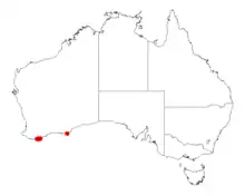 It has a discontinuous distribution and is native to an area in the Great Southern and Goldfields-Esperance regions of Western Australia where it is commonly situated in damp areas, among granite boulders or on lateritic rises growing in sandy or loamy soils over granite or laterite.[2] It is commonly part of Eucalyptus marginata woodlands and is found from the east of Albany to around Mount Manypeaks and another population is found around Mount Arid, much further to the east.[1]