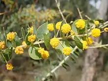 Acacia sertiformis foliage and inflorescences | |