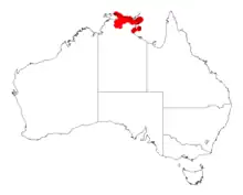 It is native to an area in the top end of the Northern Territory from around the upper South Alligator River and East Alligator Rivers in the west across to the Groote Eylandt and the Gove Peninsula in the east and is often a part of woodland communities growing in areas of sandstone.[1]