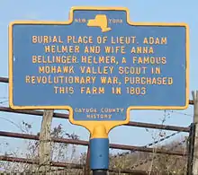 Adam Frederick Helmer (c. 1754 – April 9, 1830), also known as John Adam Frederick Helmer and Hans Adam Friedrich Helmer, was an American Revolutionary War hero among those of the Mohawk Valley and surrounding regions of New York State. He was made nationally famous by Walter D. Edmonds' popular 1936 novel Drums Along the Mohawk with its depiction of "Adam Helmer's Run" of September 16, 1778, to warn the people of German Flatts of the approach of Joseph Brant and his company of Indians and Tories.