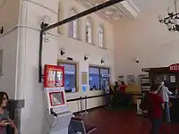 The main hall, which is two floors high is spacious. The four-piece window sets, facing Platform I at the upper section of the north walls, provide plenty of light to the hall. The bands that are covered with geometric forms, stretching in east-west direction on the ceiling, also add quality to the space. The light shining from the roof to the stairwells on both wings is a unique feature. The eaves surrounding the roof on the upper portion of the wings and the twin window sets beneath, the wide eaves extending all along above the arch gates at the middle section of the elegantly designed building front show that horizontal elements are dominant in the architecture. The ground and the first floor windows in front of the wings are in vertical frame, forming a more stable image. The elements that surround the windows have a perpendicular effect and finish with 3-slice twin blind arches which further increases perpendicularity. Thin mouldings beneath the twin window sets of the second floor which wrap around the entire building, and hewn stones which overflow from the surface at the corners and the wood supports of the wide eaves, are elements that build the architectural identity of the building's frontage.
