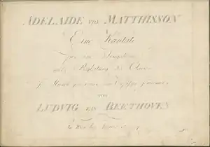 - ADELAIDE by MATTHISSON. A cantata for voice with keyboard accompaniment. Set to music, and dedicated to the author, by LUDVIG van BEETHOVEN. Artaria and Co., Vienna.