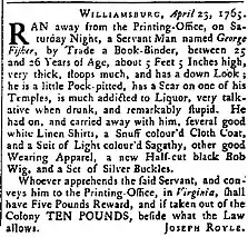 Freedom on the Move | Collection of newspaper ads in the America colonies that include posted "runaway ads" by enslavers, as well as jailers’ descriptions of people they have apprehended. |