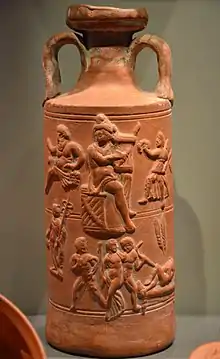 African red slip ware or Phoenician Red Slip ware, is a category of terra sigillata, or "fine" Phoenician pottery produced from the 7th century BC into the 7th century in the province of Africa Proconsularis, specifically that part roughly coinciding with the modern country of Tunisia and the Diocletianic provinces of Byzacena and Zeugitana. It is distinguished by a thick-orange red slip over a slightly granular fabric. Interior surfaces are completely covered, while the exterior can be only partially slipped, particularly on later examples.[1]