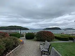 Agamont Park (originally Bar Harbor Park) is an urban park in Bar Harbor, Maine, United States. It is located at the northern end of the town's Main Street, at its intersection with West Street. The park, set upon a hill, affords 180-degree views to the northwest, north, northeast, east and southeast, including that of Mount Desert Narrows, Frenchman Bay and its islands. As such, it is a popular viewing point for tourists.[1]