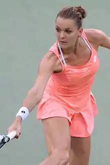 Agnieszka Roma Radwańska (Polish: [aɡˈɲɛʂka raˈdvaj̃ska] ; born 6 March 1989) is a Polish former professional ⓘtennis player. She won 20 career singles WTA Tour titles, two doubles titles, and achieved a career-high singles ranking of world No. 2 on 9 July 2012. Her achievements include winning the season-ending 2015 WTA Finals, the Women's Tennis Association (WTA) Fan Favourite Award six times, Shot of the Year five times, and Shot of the Month on a regular basis.[2][3]