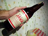 Galicia is renowned for the quality and variety of its aguardientes, including augardente de bagazo (aguardiente de Orujo), which is obtained from the distillation of the pomace of grapes, and is clear and colorless. It typically contains over 50% alcohol, sometimes significantly more, and is still made traditionally in many villages across Galicia today. Augardente de herbas, usually yellow, is a sweet liqueur made with augardente de bagazo and herbs (herbas), with chamomile being a substantial ingredient.[12] Licor café (typical distilled drink in the province of Ourense), black in color, is a sweet liqueur made with augardente de bagazo, coffee (café), and sugar. Crema de augardente or crema de caña is a cream liqueur based on augardente, coffee, cream, milk, and other ingredients. It is similar to Irish cream liqueur. In some places in Galicia, a small glass is traditionally taken at breakfast as a tonic before a hard day's work on the land. The word "orujo" is Spanish and not Galician, but is used to distinguish Galician and some Spanish augardentes from those of other countries.[13]