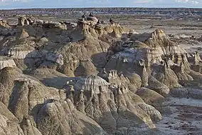 Ah-Shi-Sle-Pah Wilderness is located in San Juan County, New Mexico, between Chaco Canyon and the De-Na-Zin Wilderness. Its name is a phonetic transliteration of Navajo "áshįįh łibá" meaning "salt, it is grey (grey salt)". The wilderness has multicolored badlands, sandstone hoodoos, petrified wood and dinosaur bones, similar to those found in the nearby Bisti Badlands and De-Na-Zin Wilderness.