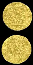Al-Mansur had ambivalent relations with the Ottoman Empire. At the very start of his reign he formally recognized the suzerainty of the Ottoman sultan, as Abd al-Malik had done, while still remaining independent in practice.[18]: 190 However he quickly alienated the Ottoman sultan when he favorably received the Spanish embassy in 1579, who brought him lavish gifts, and then reportedly trampled the symbol of Ottoman suzerainty before a Spanish embassy in 1581. He also suspected that the Ottomans were involved in the first rebellions against him in his early reign. As a result, he minted coins in his own name and had Friday prayers and the khutba delivered in his name instead of in the name of Murad III, the Ottoman sultan.[18]: 189 [19]: 63