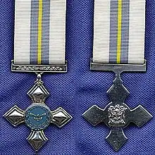 The Air Force Cross, post-nominal letters CA (Crux Aeronautica), is a South African military decoration which was instituted by the Republic of South Africa in 1987. It was awarded to members of the South African Air Force for bravery. The decoration was discontinued in 2003, but backdated awards can still be made for acts of bravery during this period.[1][2]