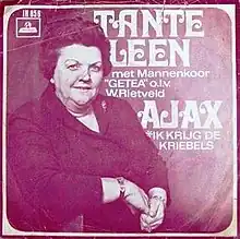 "Ajax" is a Levenslied song by Tante Leen which was released on Imperial Records in 1969.[1] It is dedicated to Tante Leen's hometown association football club AFC Ajax from Amsterdam.[2] The song is the A-side to the record "Ajax / Ik krijg de kriebels" (English: I get the jitters) which was released as a 7"-single. The record features guest vocal by the men's choir "GETEA" under guidance of W. Rietveld.[3] The song is one of many records Tante Leen has released and dedicated to her favorite football club throughout the span of her career.[4]
