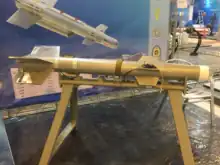 Akhgar missile (Persian: موشک اخگر) is an Iranian drone-launched air-to-ground missile operated by the Islamic Republic of Iran Air Force.[1] This Unmanned aerial vehicle weapon, which is among the newest missiles of Iranian drones, has a range of 30 km,[2] its weight is twenty seven kg and its maximum speed is 600 kilometers per hour.[3][4]