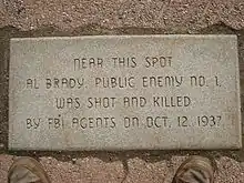 Alfred James "Al" Brady (October 25, 1910 – October 12, 1937) was an Indiana-born armed robber and murderer who became one of the FBI's "Public Enemies" in the 1930s. He and an accomplice were shot dead in an ambush by FBI agents in downtown Bangor, Maine, in 1937.[1] The spectacular public gun-battle that led to the demise of "The Brady Gang" is an essential part of Maine history, and was even the subject of a re-enactment in 2007.