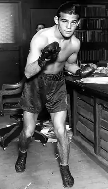 Singer was born in a tenement on Broome Street, part of the Jewish section in New York's Lower East Side on September 6, 1909. He was one of four sons and a daughter born to an ambitious ladies' garment entrepreneur who would keep his large family in America's middle class. One of his brothers was screenwriter Ray Singer.[3] Singer, an all round athlete who loved basketball, was discovered by boxing trainers Harry Drucker and Hymie Caplan after his tenth amateur bout which included a great showing in his first outing against the New York State Bantamweight champion, Jimmy Cruze.[1][4] As an amateur boxer, he won the Metropolitan AAU featherweight title.[5] Singer had unsurpassed grace and a studied style in the ring, and he could punch with authority, but unlike the great lightweight Benny Leonard, to whom he was often compared, he could not take a strong punch and was considered to have a "glass jaw". His quick rise to fame, and equally quick demise could be explained by these competing characteristics.[6]