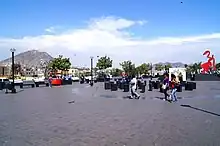 The avenue is crowned by a large steel sculpture without chrome and painted in red titled "La marinera", the work of artist Rhony Alhalel, which pays tribute to the marinera, the national dance of Peru.[4]