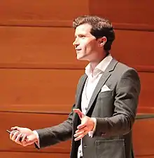 He has presented at TEDx in the Sydney Opera House.[19] He was the Ambassador for the Sydney Science Festival 2016,[20] and host for Famelab showcasing Australian research and achievement in science, technology, engineering and mathematics.[21] He hosted an Evening with Neil DeGrasse Tyson at the Melbourne Convention Centre, interviewed onstage Lawrence Krauss[22] as well as Brian Greene,[23] and presented in a national tour for BBC Worldwide's The Science of Doctor Who.[24] He was a featured speaker at the Australian Skeptics' national conventions in 2017[25] and 2018.[26] In 2018 he was a host of ABC's Stargazing Live series.[27]