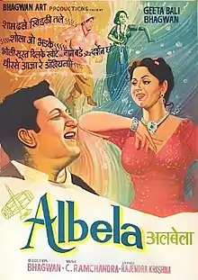 Albela is a 1951 Bollywood musical comedy film directed by and starring Bhagwan Dada and Geeta Bali.[1] A Hindi classic, it was the third highest-grossing film at the Indian Box Office in 1951 and its soundtrack by C. Ramchandra was acclaimed.[2][3]