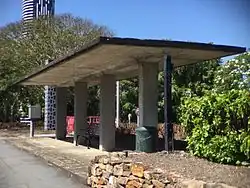 Of the 37 reusable shelters listed as being of the park type only 17 survive: one at Hefferan Park in Annerley; two at Albert Park (on the north and side souths); two at Wickham Park; one in Buranda Playground in Woolloongabba; two in Raymond Park (on the east and west sides) in Kangaroo Point; and one each at Kelvin Grove, Morningside, Nundah, Stones Corner, and Windsor. Four other shelters stand on East Street and Wickham Street in Fortitude Valley. Most are used as simple park shelters, as intended, but the shelter at Nundah has been modified as a toilet block, and the shelter at Kelvin Grove is used as a bus shelter (as distinct from those shelters in the next category, which were specifically designed as "bus" type shelters). About half of the surviving park shelters had concrete blast walls, while half used brick.[1]