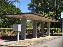 The second design was the pillbox with single-cantilevered roof slab, or "bus" type shelter, as it was called in the original Brisbane City Council list. These were designed so that the three brick blast walls could be removed after the war, leaving a concrete back wall and five brick piers at the front. Again, entrances were at each end of the front wall. Of the 19 "bus" types listed only two survive, at Newmarket and Newstead.[1]