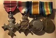 For his war services he was awarded the 1914-15 Star, the British War Medal, the Victory Medal and the Order of the British Empire.[10]