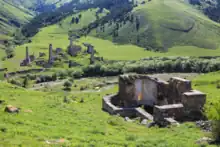 The Alby-Yerdy (Ingush: Альби-Ерды; Georgian: ალბი-ერდი) are the ruins of the medieval temple in Ingushetia, located on the left bank of the Assa River. As a result of a radiocarbon study, scientists date the architectural monument to 668-974.[1] Following the opinion of most researchers, the temple is recognized as a Christian church, although numerous remains of sacrificial animals were found inside the church, indicating rituals of ancient Ingush religion.