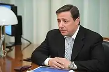 In 2001, he became the governor of Taymyr Autonomous Okrug in northern Siberia, holding that position until 2002.[3] Khloponin won the election for governor of Krasnoyarsk Krai against Alexander Uss, another man with major business links. The race was relatively close, with Khloponin winning only 48% of the vote even in the runoff.[4]