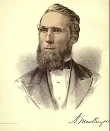 Mackenzie's first biography in 1892 referred to him as Canada's Stainless Statesman.[8] He was a devout Baptist and teetotaller who found refuge in, and drew strength from, his family, friends, and faith.[9][2] He was also a loyal friend and an incorrigible prankster (stuffed chimney on young in-laws; rolled boulder down Thunder Cape towards friend A. McKellar; burned Tory campaign placards in hotel woodstove early in morning).[10] Unpretentious and down to earth,[11] his public official austerity was in striking contrast to private compassion and giving nature.[12] He was the soul of honour and integrity,[13] a proud man who sought no recognition or personal enrichment and accepted gifts reluctantly.[14] He preferred to follow than to lead (unreferenced – many times he refused leadership offers) and often found that duty outweighed the heavy burden of office.[15] He was uncompromising on his principles, perhaps too much so.[16] An historian at the time said, "He was, and ever will remain, the Sir Galahad of Canadian politics."[17]