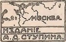 Alexei Dmitrievich Stupin (Russian: Алексей Дмитриевич Ступин; (12 February 1844, Serpukhov — 1915, Moscow) was a publisher and bookseller from the Russian Empire. His company was one of the first in Moscow, and the largest in the late 19th century.